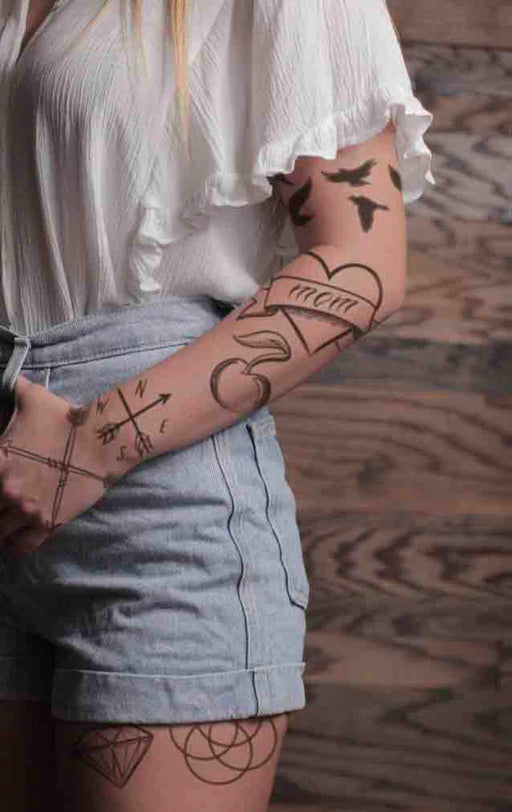 HookUp TattoosOriginal price $22.25 - Original price $22.25Original price$22.25$22.25 - $22.25Current price $22.257 ½” x 8” – Various Sizes Black and grey waterslide tattoo with reverse image on the back to help with placement.